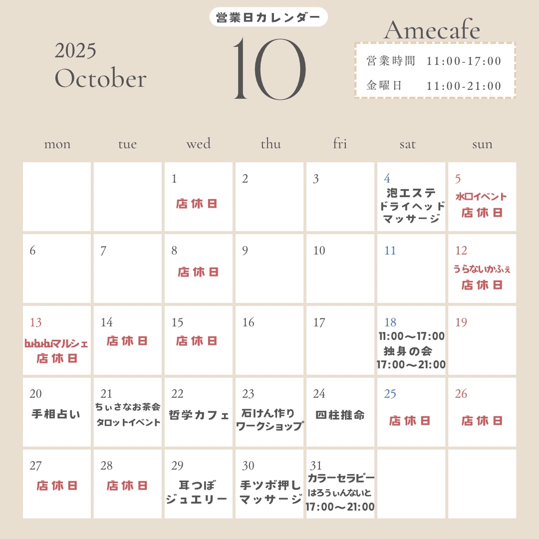 10月カレンダー