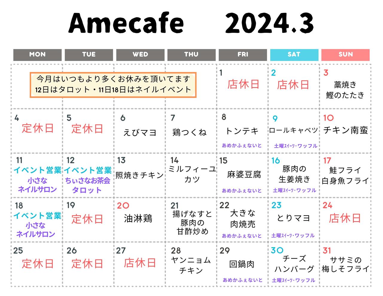 3月の気まぐれランチカレンダー