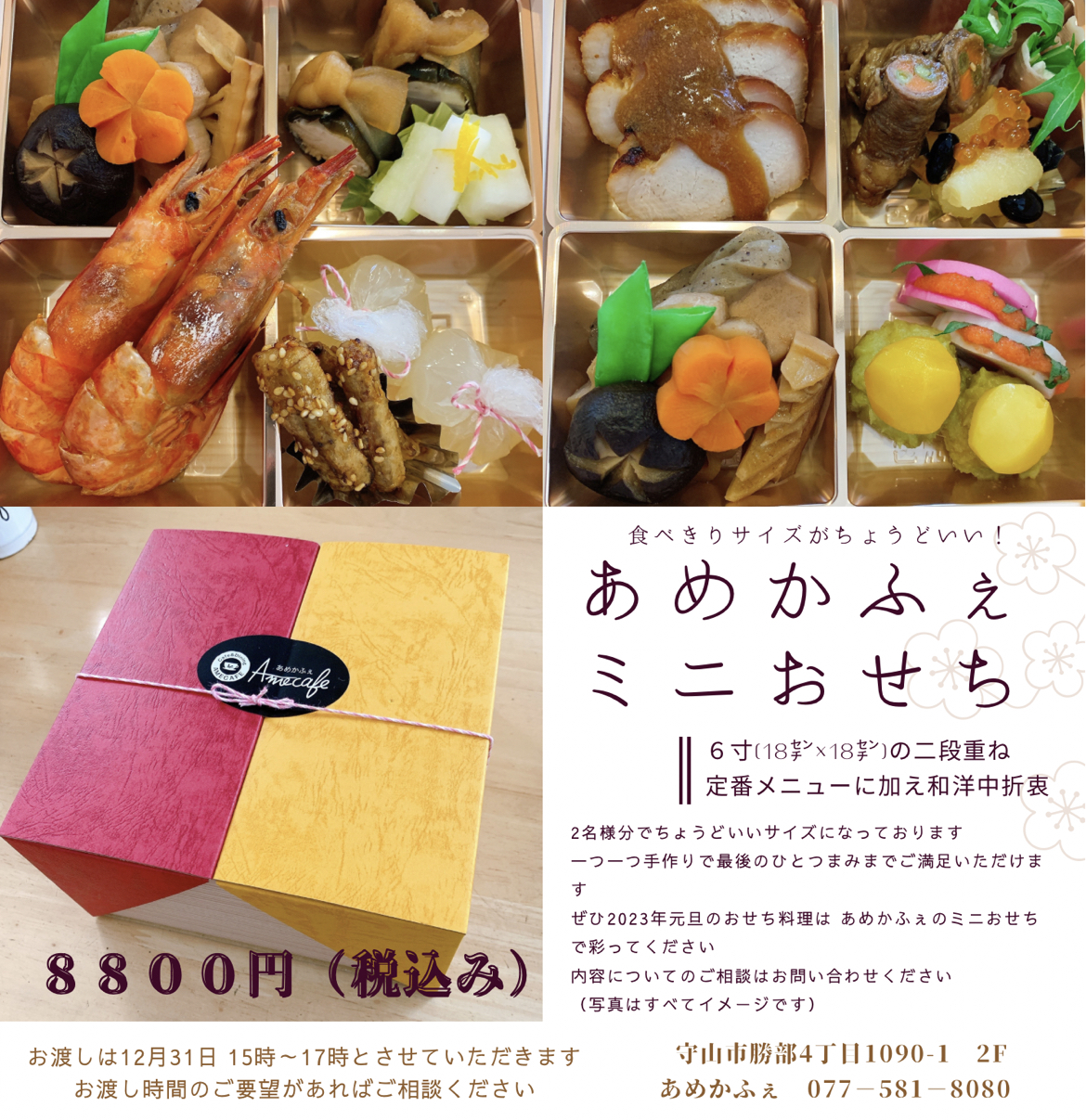 Amecafeでは日曜2人前で程よいサイズのおせちを今年も販売致します!