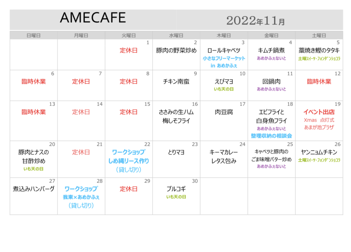 11月の気まぐれランチカレンダー