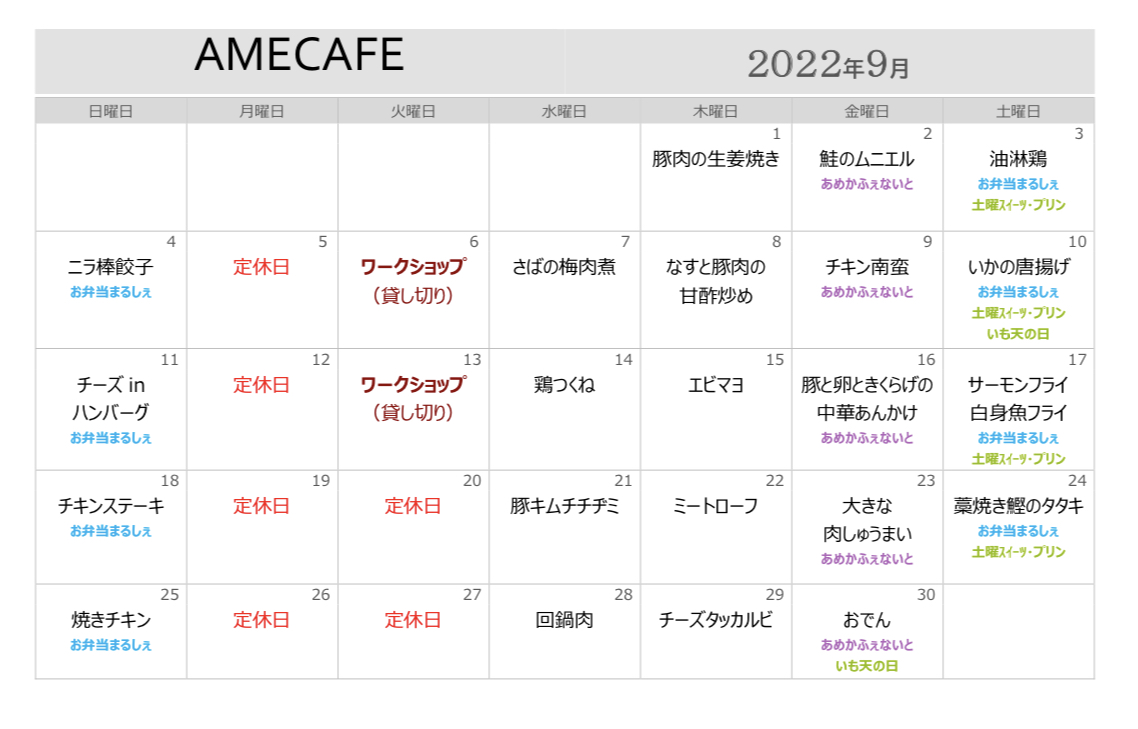 9月の気まぐれランチカレンダー