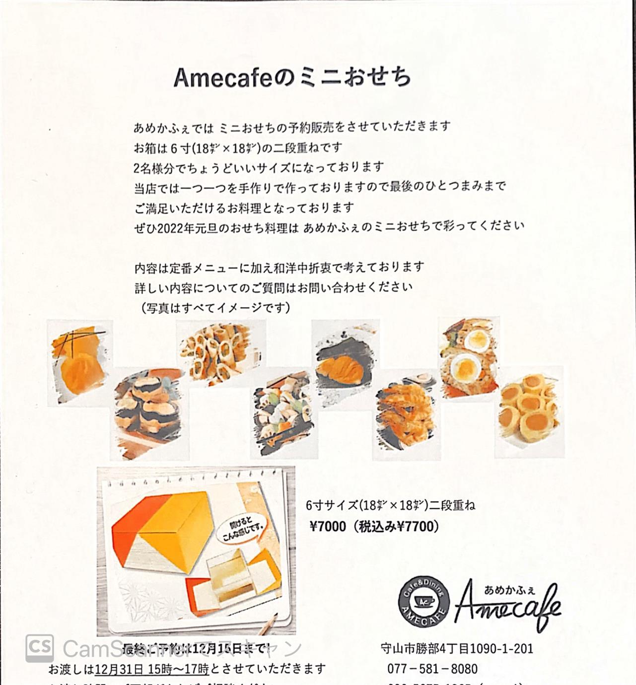 年末にAmecafeミニおせちを販売致します