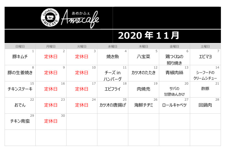 11月のAmecafeカレンダー